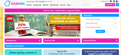 A Jateknet.hu Magyarország egyik legnagyobb online játékboltja. Termékkínálatában gyakorlatilag mindegyik népszerű márka és termékkategória megtalálható (a bébijátéktól kezdve a csúszdákig bezárólag) A magyar mellett, a román piacon is egyre népszerűbbek folyamatosan frissülő kínálatukkal. Piaci növekedésük mellett védjegyükként megtartották a családias légkört és a vevőközpontú, szemléletmódot.